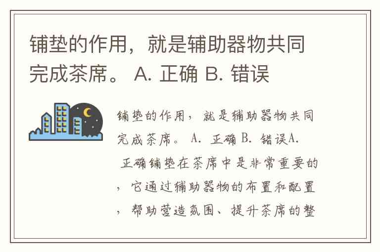 铺垫的作用,就是辅助器物共同完成茶席。 A. 正确 B. 错误