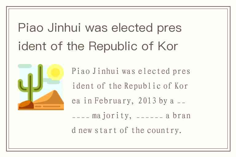 So the sentence would read: "Piao Jinhui was elected president of the Republic of Korea in February, 2013 by a narrow majority, marking a brand new start of the country."