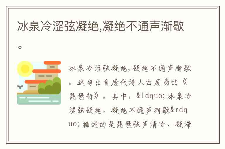 冰泉冷涩弦凝绝,凝绝不通声渐歇。