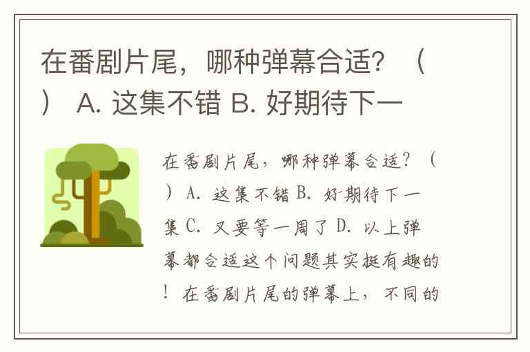 在番剧片尾,哪种弹幕合适?() A. 这集不错 B. 好期待下一集 C. 又要等一周了 D. 以上弹幕都合适
