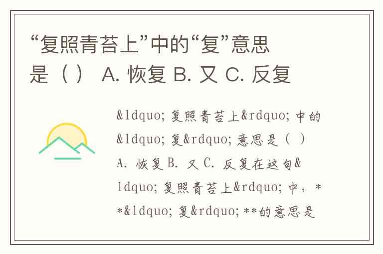 “复照青苔上”中的“复”意思是( ) A. 恢复 B. 又 C. 反复
