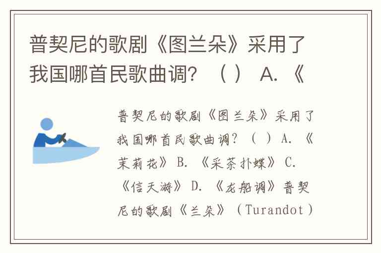 普契尼的歌剧《兰朵》(Turandot)确实采用了我国的民歌曲调。正确答案是: