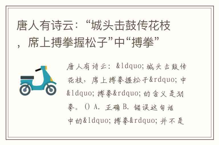 唐人有诗云:“城头击鼓传花枝,席上搏拳握松子”中“搏拳”的含义是划拳。() A. 正确 B. 错误
