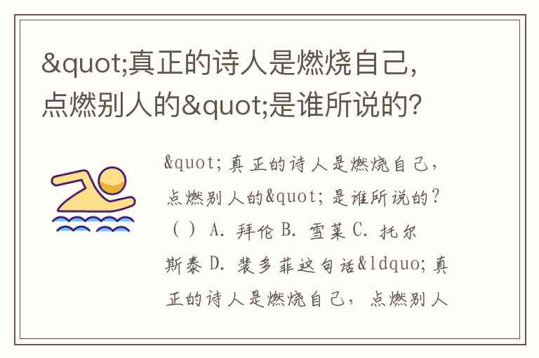 "真正的诗人是燃烧自己,点燃别人的"是谁所说的?() A. 拜伦 B. 雪莱 C. 托尔斯泰 D. 裴多菲