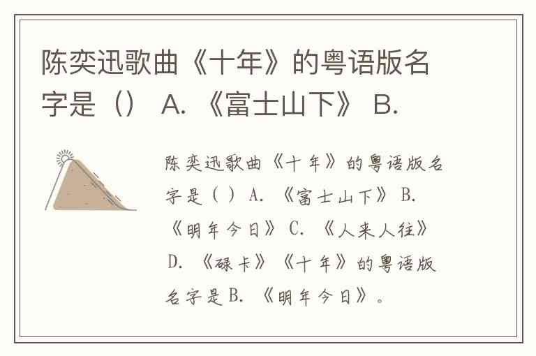 陈奕迅歌曲《十年》的粤语版名字是() A. 《富士山下》 B. 《明年今日》 C. 《人来人往》 D. 《碌卡》