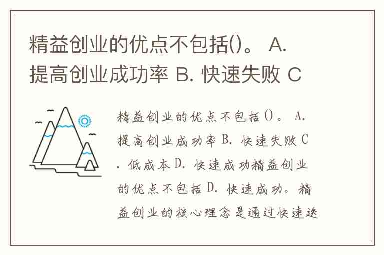 精益创业的优点不包括()。 A. 提高创业成功率 B. 快速失败 C. 低成本 D. 快速成功