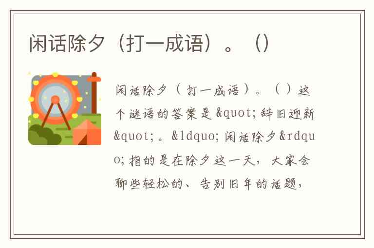 闲话除夕(打一成语)。()