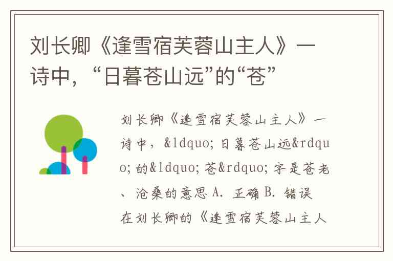 刘长卿《逢雪宿芙蓉山主人》一诗中,“日暮苍山远”的“苍”字是苍老、沧桑的意思 A. 正确 B. 错误