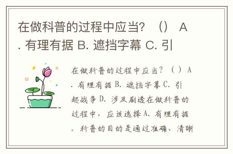 在做科普的过程中应当?() A. 有理有据 B. 遮挡字幕 C. 引起战争 D. 涉及剧透