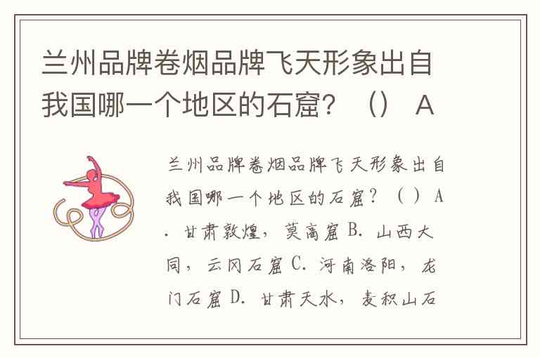 兰州品牌卷烟品牌飞天形象出自我国哪一个地区的石窟?() A. 甘肃敦煌,莫高窟 B. 山西大同,云冈石窟 C. 河南洛阳,龙门石窟 D. 甘肃天水,麦积山石窟