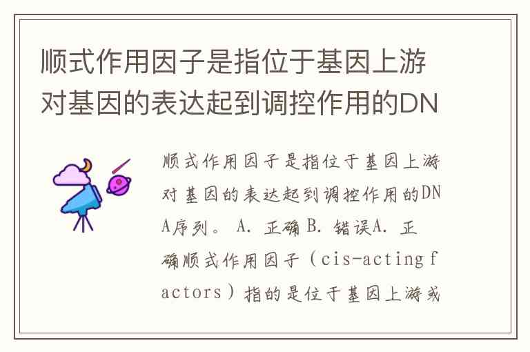 顺式作用因子是指位于基因上游对基因的表达起到调控作用的DNA序列。 A. 正确 B. 错误