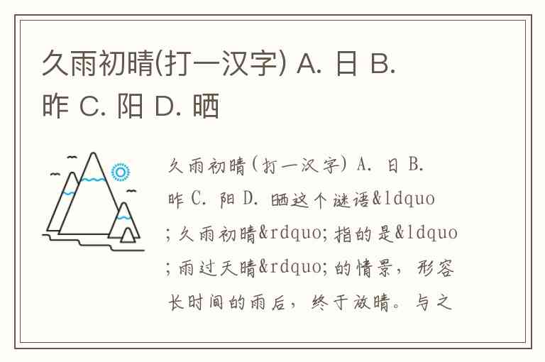 久雨初晴(打一汉字) A. 日 B. 昨 C. 阳 D. 晒