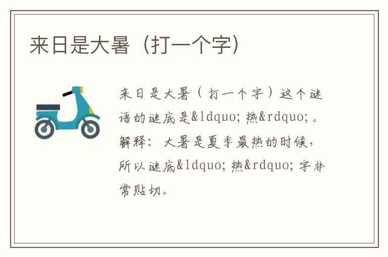 解释:大暑是夏季最热的时候,所以谜底“热”字非常贴切。