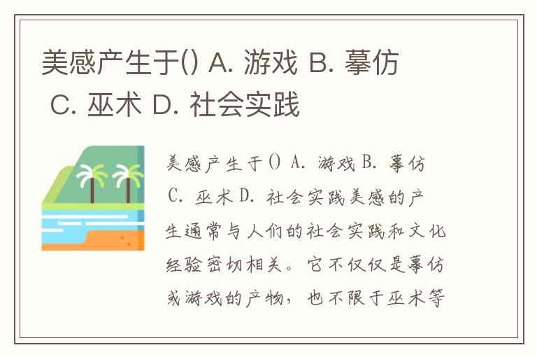 美感产生于() A. 游戏 B. 摹仿 C. 巫术 D. 社会实践