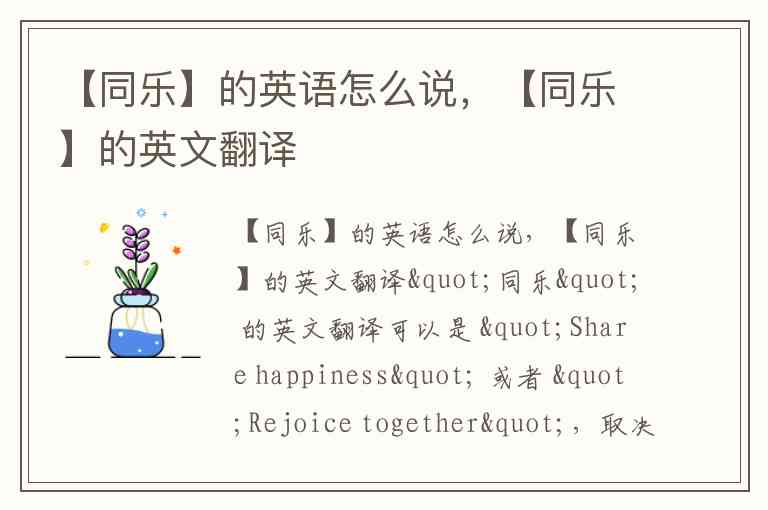 【同乐】的英语怎么说,【同乐】的英文翻译