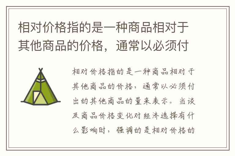 根据相对价格的定义,相对价格指的是一种商品相对于其他商品的价格,通常以其他商品的数量来衡量。对于价格变化对经济选择的影响,强调的是相对价格的变化。