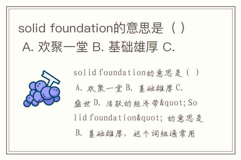 solid foundation的意思是( ) A. 欢聚一堂 B. 基础雄厚 C. 盛世 D. 活跃的经济带
