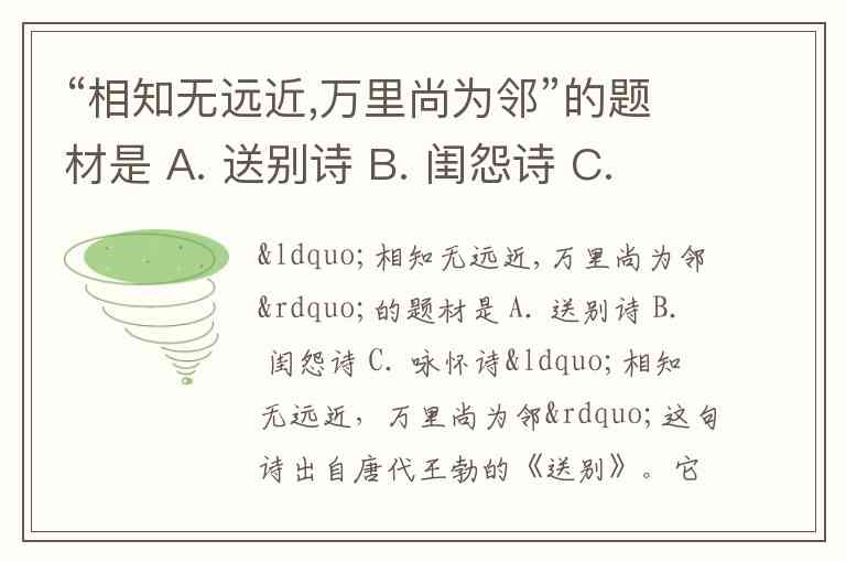 “相知无远近,万里尚为邻”的题材是 A. 送别诗 B. 闺怨诗 C. 咏怀诗