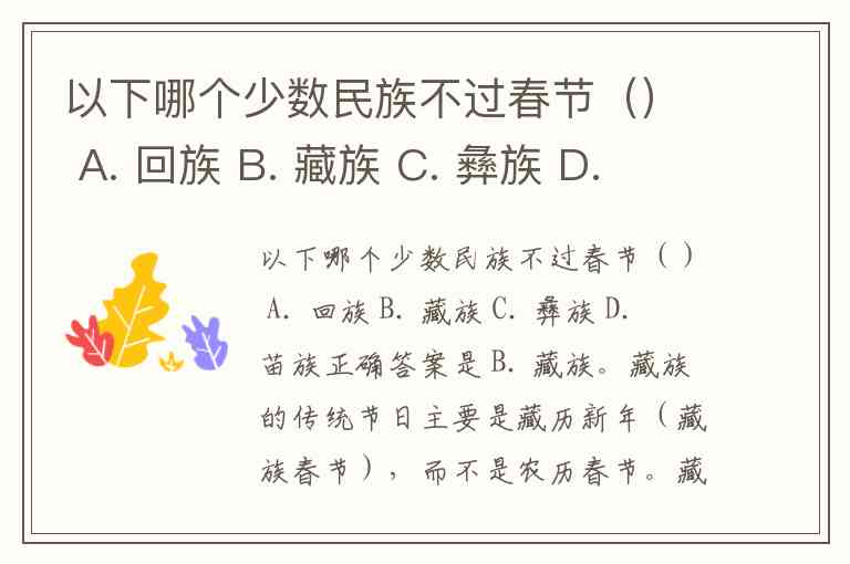 以下哪个少数民族不过春节() A. 回族 B. 藏族 C. 彝族 D. 苗族