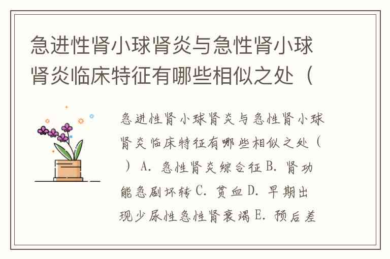 急进性肾小球肾炎与急性肾小球肾炎临床特征有哪些相似之处( ) A. 急性肾炎综合征 B. 肾功能急剧坏转 C. 贫血 D. 早期出现少尿性急性肾衰竭 E. 预后差