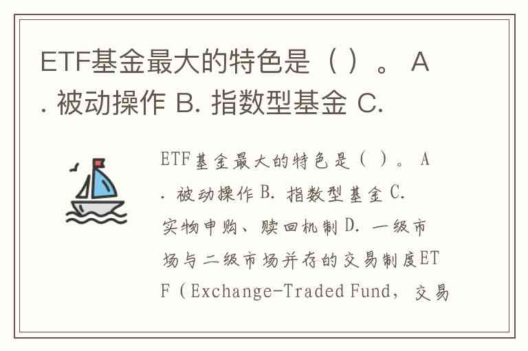 A. 被动操作:虽然许多ETF基金采用被动管理策略(例如追踪某个指数),但并非所有ETF都是被动操作的,因此不能算是其最大特色。
