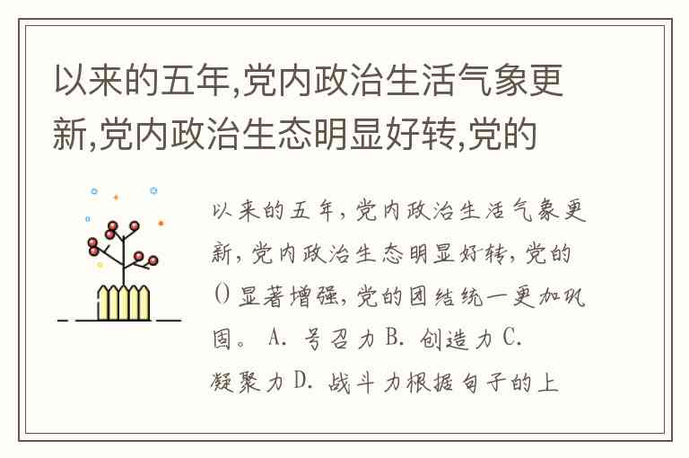 以来的五年,党内政治生活气象更新,党内政治生态明显好转,党的()显著增强,党的团结统一更加巩固。 A. 号召力 B. 创造力 C. 凝聚力 D. 战斗力