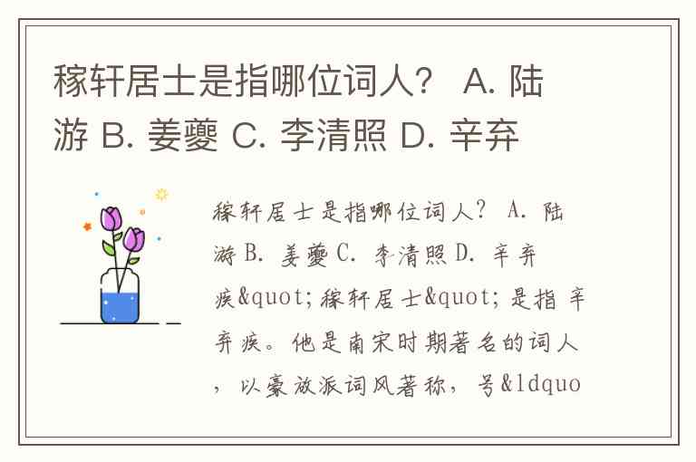 稼轩居士是指哪位词人? A. 陆游 B. 姜夔 C. 李清照 D. 辛弃疾