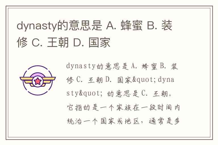 dynasty的意思是 A. 蜂蜜 B. 装修 C. 王朝 D. 国家