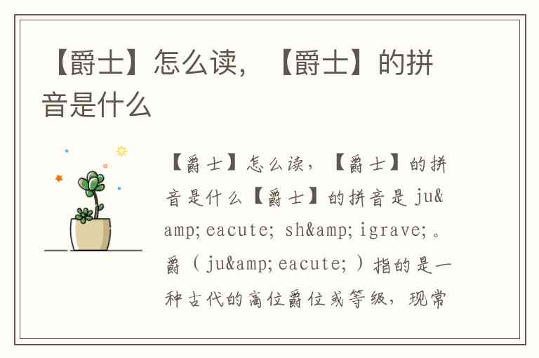 爵(jué)指的是一种古代的高位爵位或等级,现常用来指代爵士乐(Jazz)等。