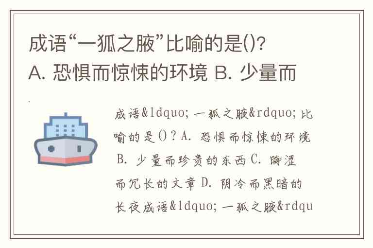 成语“一狐之腋”比喻的是()? A. 恐惧而惊悚的环境 B. 少量而珍贵的东西 C. 晦涩而冗长的文章 D. 阴冷而黑暗的长夜