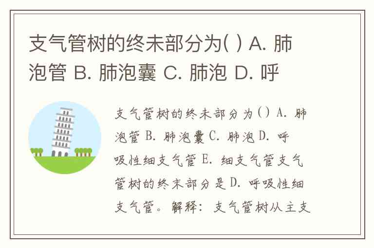 支气管树的终未部分为( ) A. 肺泡管 B. 肺泡囊 C. 肺泡 D. 呼吸性细支气管 E. 细支气管
