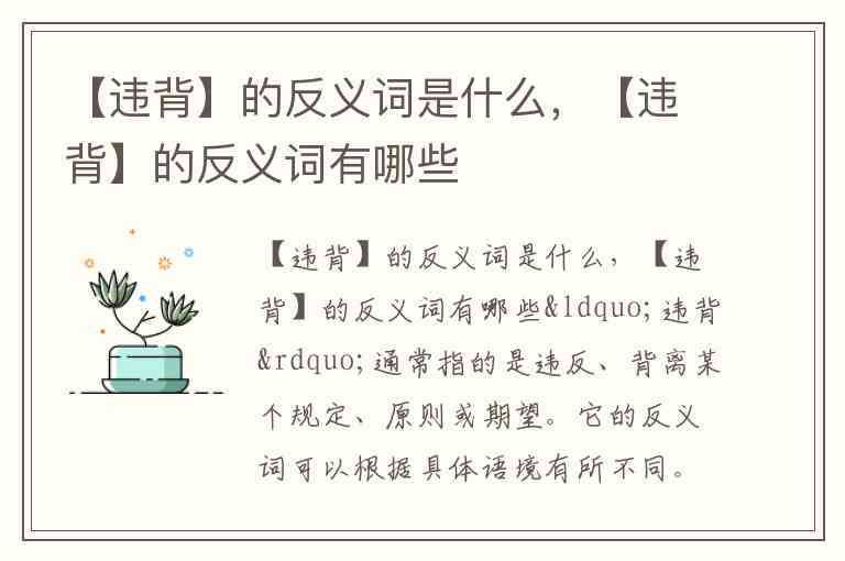 【违背】的反义词是什么,【违背】的反义词有哪些