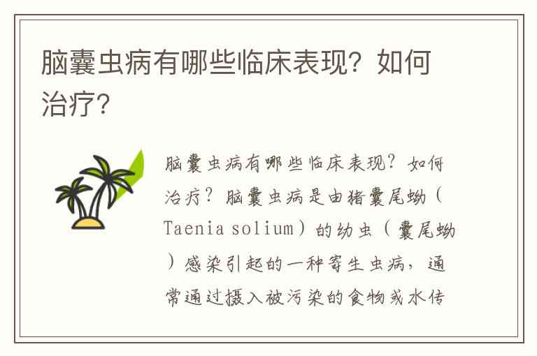 脑囊虫病是由猪囊尾蚴(Taenia solium)的幼虫(囊尾蚴)感染引起的一种寄生虫病,通常通过摄入被污染的食物或水传播。其临床表现多样,主要取决于囊虫寄生的部位、数量以及患者的免疫反应。