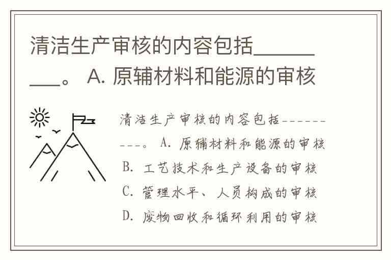 清洁生产审核的内容包括_________。 A. 原辅材料和能源的审核 B. 工艺技术和生产设备的审核 C. 管理水平、人员构成的审核 D. 废物回收和循环利用的审核
