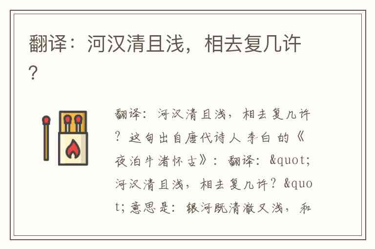 翻译:"河汉清且浅,相去复几许?"意思是:银河既清澈又浅,和我们之间的距离又有多远呢?