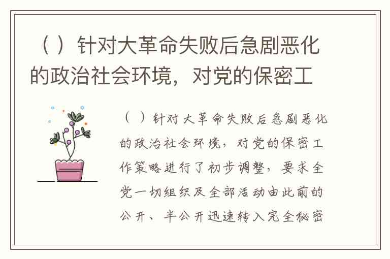 解析:1927年大革命失败后,中国共产党遭受严重打击,组织遭到严重破坏。在革命危急关头召开的八七会议,不仅确定了土地革命和武装反抗国民党反动派的总方针,另一个非常重要的决定就是要求党的组织迅速转入地下,实行彻底的秘密工作,以保存和积蓄革命力量。这是党的保密工作从初创走向成熟的一个重要转折点。