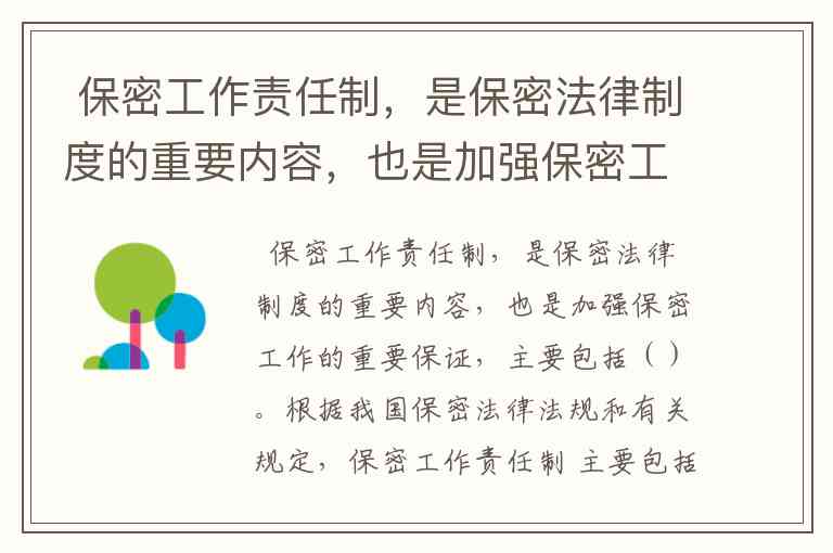 根据我国保密法律法规和有关规定,保密工作责任制 主要包括以下几个核心方面: