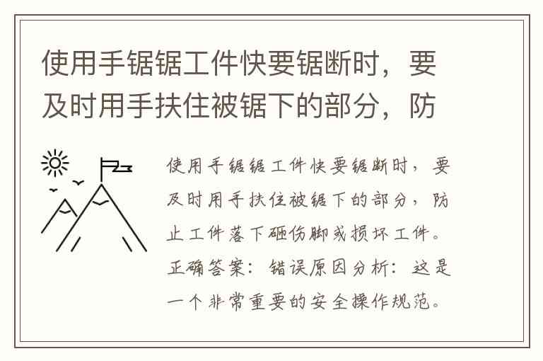 这是一个非常重要的安全操作规范。在用手锯锯工件快要锯断时,严禁直接用手去扶住被锯下的部分。