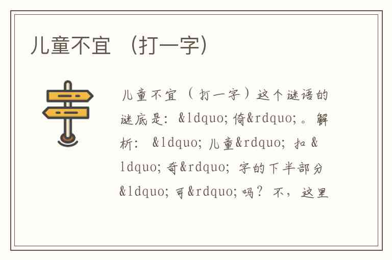 但网上常见此谜答案为 “倚”,解释为: “儿童” 扣 “奇”(因为“奇”可拆为“大”和“可”,但“儿童”与“奇”无直接关系,可能用“奇”表示“奇怪”或“奇异”,儿童不宜看奇怪的东西?牵强)。