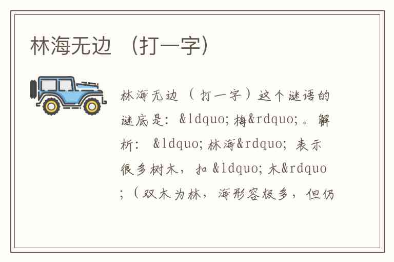 因此,“林海无边”=“木”+“每”=“梅”。