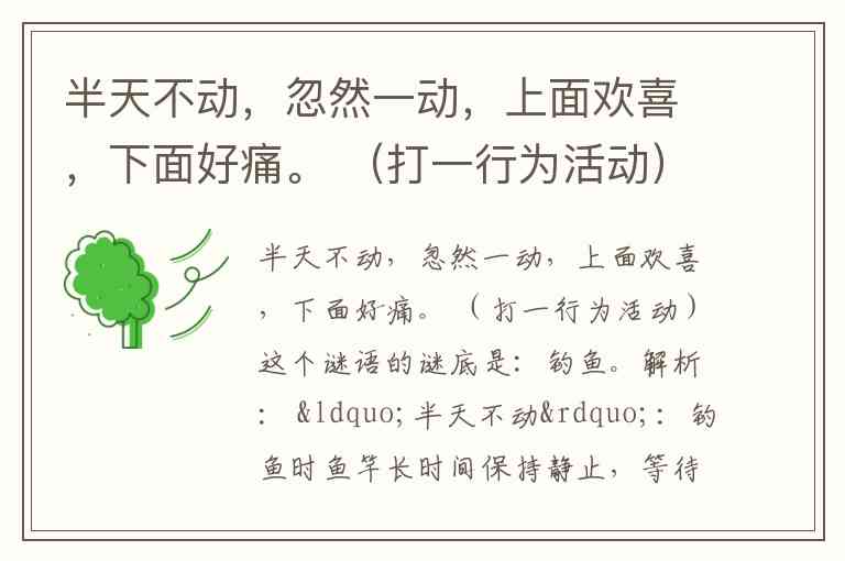解析: “半天不动”:钓鱼时鱼竿长时间保持静止,等待鱼上钩。