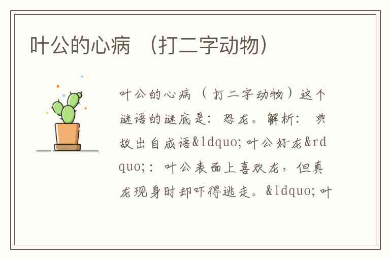 叶公的心病 (打二字动物)