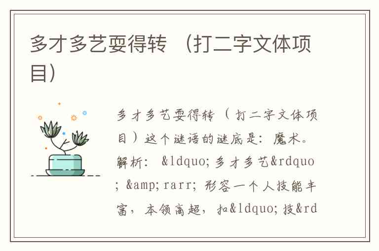 解析: “多才多艺” → 形容一个人技能丰富,本领高超,扣“技”或“艺”,但这里指向魔术师的特点。