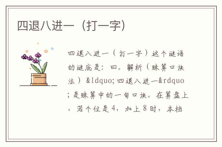解析(珠算口诀法) “四退八进一”是珠算中的一句口诀。