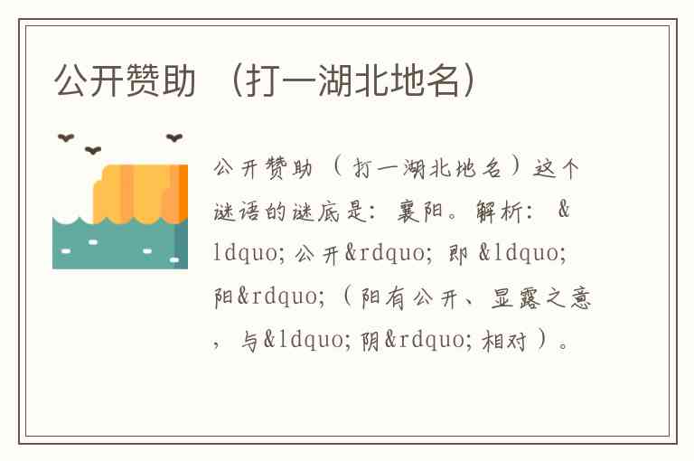 公开赞助 (打一湖北地名)