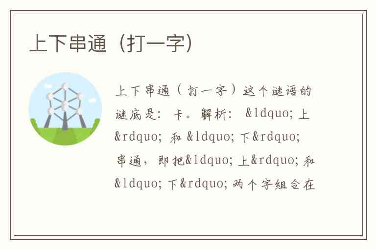解析: “上” 和 “下” 串通,即把“上”和“下”两个字组合在一起。