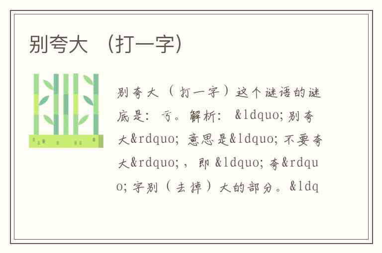 解析: “别夸大” 意思是“不要夸大”,即 “夸”字别(去掉)大的部分。
