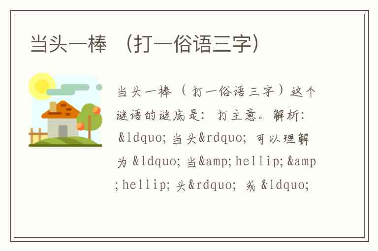当头一棒 (打一俗语三字)