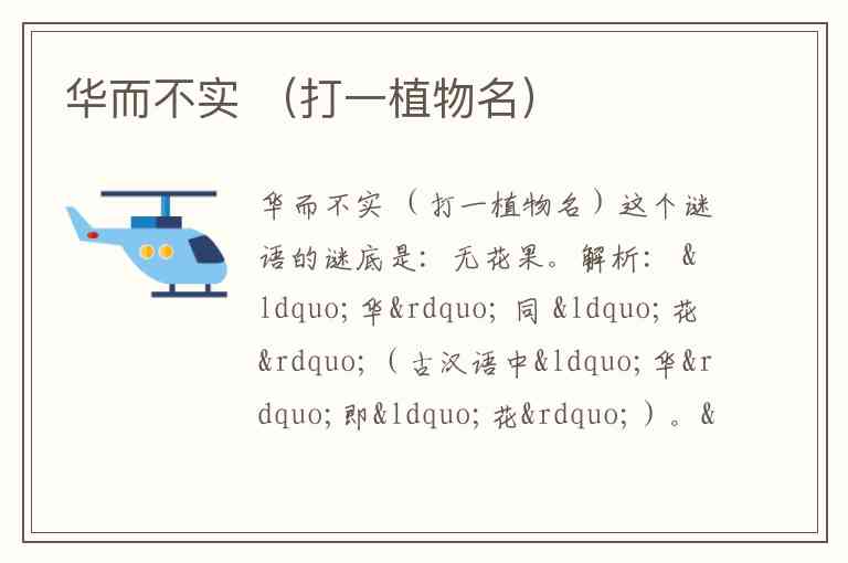 合起来就是 “无花果”(字面意为“有花无果”,但无花果实际上是有花的,只是隐头花序,外表看似无花而直接结果,正扣“华而不实”的双关含义)。