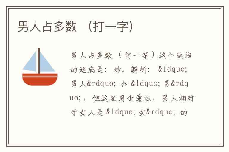 解析: “男人” 扣 “男”,但这里用会意法,男人相对于女人是 “女” 的反义,但“男人占多数”不是直接取“男”。